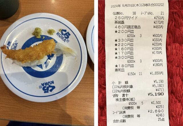 二人で5190円分食べて、払った金額は2690円です